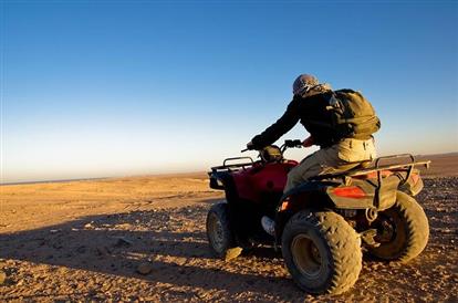 2-Sunset program (5 hours)(with a lunch) enjoy 50 km driving the quad from the afternoon till sunset with a visiting the Bedouin village and camel riding